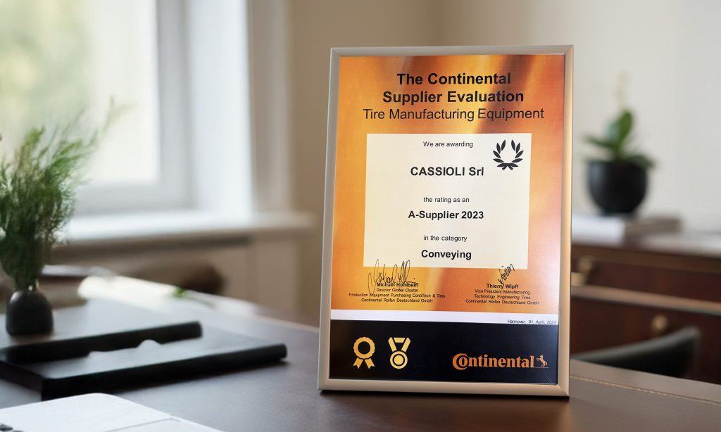 Cassioli fue reconocida por Continental como “A-Supplier 2023” en la categoría “Conveying”. Este reconocimiento es un logro adicional que confirma la profesionalidad de Cassioli como socio de una de las mayores empresas a nivel internacional en el sector de los neumáticos.