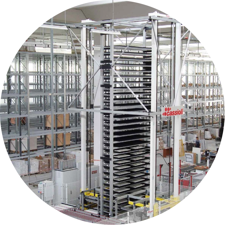 Cassioli ofrece una amplia gama de almacenes especiales que se diferencian por la metodología operativa, el tipo de material manipulado y la capacidad de manipulación. Basándose en la experiencia acumulada durante muchos años en el sector de los almacenes intensivos, CASSIOLI ofrece al cliente la solución de instalación más adecuada para sus exigencias, proporcionando una mejora efectiva y real en el sistema de producción-clasificación así como una optimización de los costes. La inversión inicial necesaria para comprar el sistema automatizado, de hecho, se puede amortizar en pocos años gracias a los considerables ahorros operativos en personal y a la óptima gestión del trabajo.