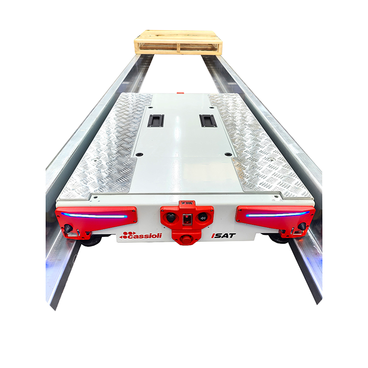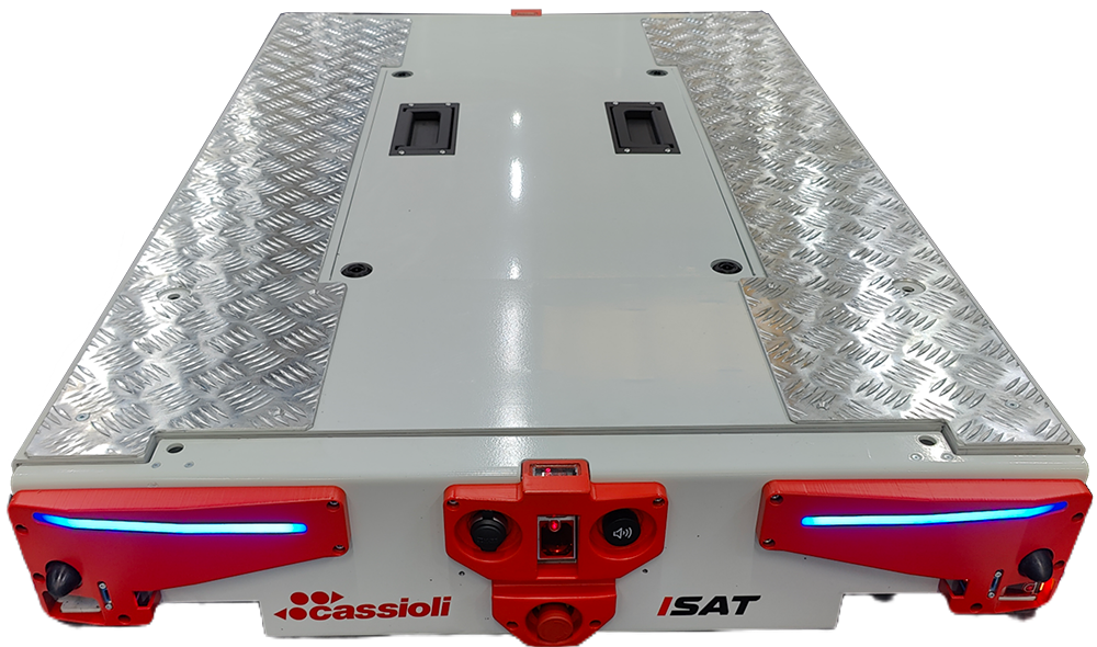 El satélite (pallet shuttle) ISAT semiautomático de Cassioli está diseñado para el almacenamiento de palets de alta densidad. El ISAT semiautomático permite el almacenamiento de una gran cantidad de palets, con una profundidad de más de 40 metros desde el borde frontal de carga, lo que permite optimizar el espacio del almacén y almacenar palets de diferentes profundidades en el mismo canal de almacenamiento. ISAT, en modalidad semiautomática, está controlado por un mando a distancia gestionado directamente por el operador. Desde la pantalla del mando a distancia se pueden controlar las condiciones de funcionamiento en tiempo real. Los indicadores LED ayudan al operador a localizar la posición exacta del pallet shuttle en el almacén. El pallet shuttle ISAT también está diseñado para trabajar en entornos con temperaturas bajo cero: por lo tanto, es la solución ideal para operar en frigoríficos o congeladores industriales, sin que se menoscabe su funcionamiento ni sus prestaciones.