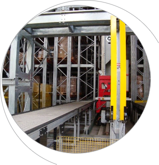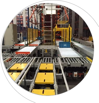 La línea de enclavamiento en la cabecera del almacén cuenta con 16 islas de recogida paralelas atendidas por el sistema de lanzaderas motorizadas SLS. La línea también gestiona las salidas directas sin recogida y el flujo de entrada/salida del almacén (readmisión o recogidas requeridas de la zona de recogida). La solución de la lanzadera permite evitar que se genere el fenómeno de las «colas», vinculado básicamente a un desequilibrio entre la duración de las operaciones que se suceden. El sistema SLS consta de unidades de transporte que se alimentan de forma independiente. La velocidad máxima que puede alcanzar cada unidad móvil es de 300 m/min (5,0 m/s) con una aceleración de 2 m/s2.